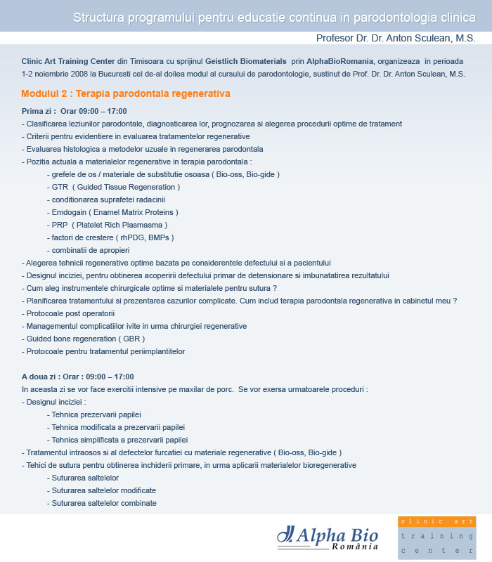 Curs teoretic si practic de implantologie pentru incepatori, cu exercitii pe tipodont si OP life